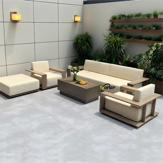 5. Tiikpuust välidiivan: valmistatud väga ilmastikukindlast naturaalsest tiikpuust, sellel on peeneteraline, kõrge stabiilsusega diivan ning see tekitab kasutamisel luksuslikuma tunde, muutes selle klassikaliseks valikuks tipptasemel kuurordi stiilis rõdu loomiseks.